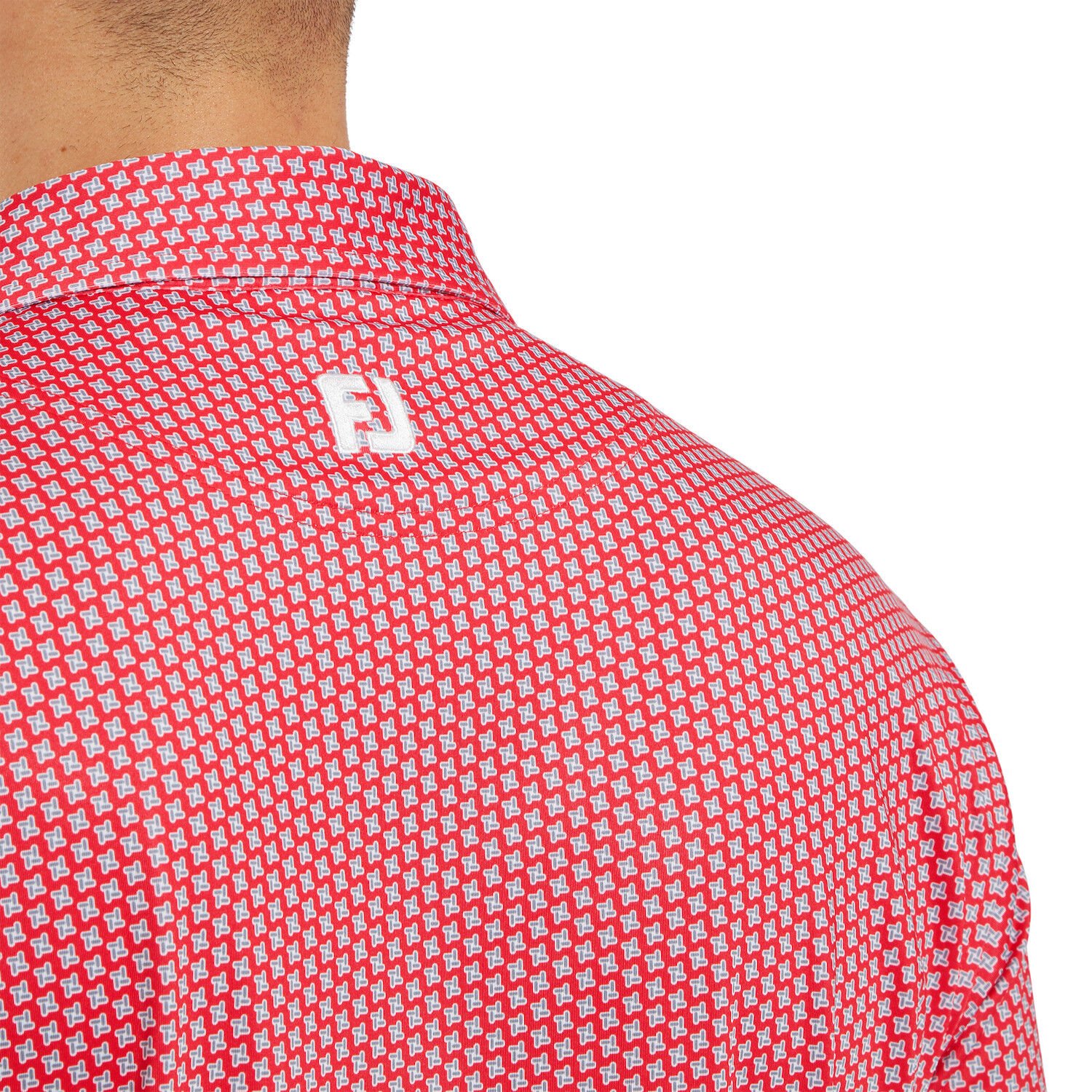 FootJoy Houndstooth Geo Lisle Erkek Golf T-Shirt 34010 Hibiscus
